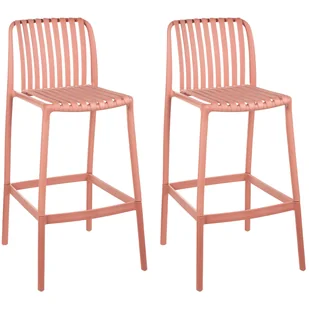 Zestaw stołków barowych do domu i ogrodu. Ten wszechstronny zestaw 2 krzeseł barowych łączy elastyczność z wygodą. Ich dolna część jest odłączana, co pozwala szybko przekształcić je z wysokich stołków barowych w standardowe krzesła do jadalni. Wykonane z wytrzymałego materiału syntetycznego, są odporne na warunki atmosferyczne i łatwe w czyszczeniu, dzięki czemu świetnie sprawdzą się w ogrodzie i na tarasie. Konstrukcja bez podłokietników w połączeniu z modną kolorystyką doda nowoczesnego charakteru każdemu otoczeniu.