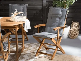 Klasyczne krzesła do ogrodu z drewna akacjowego Wyposaż swój ogród w te stylowe i wygodne krzesła obiadowe. Wykonane z najwyższej jakości drewna akacjowego, są one bardzo wytrzymałe i odporne na zmiany pogodowe. Swoim ponadczasowym wyglądem wpasują się do każdego ogrodu, nowoczesnego, jak i rustykalnego. Do każdego krzesła dołączona jest także poduszka, wykonana z poliestru, odporna na promienie UV, a także na deszcz i wodę. Dzięki wiązadłom możesz szybko odczepić poduchę, a korzystając z zamków, możesz zdjąć poszewkę i umyć ją, nie obawiając się uszkodzenia całej poduchy.