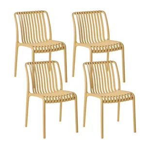 Komplet sztaplowanych krzeseł ogrodowych. Nowoczesne i stylowe – ten zestaw 4 krzeseł ogrodowych doskonale łączy wygodę z estetyką. Ich ażurowe oparcia i prosta forma wprowadzają lekkość i świeżość do każdej przestrzeni zewnętrznej. Wykonane z odpornego na warunki atmosferyczne plastiku, świetnie sprawdzą się podczas letnich spotkań, relaksu przy basenie czy codziennego użytkowania na tarasie. Krzesła są lekkie, ale stabilne, a możliwość ich sztaplowania sprawia, że przechowywanie nie sprawi żadnego problemu.