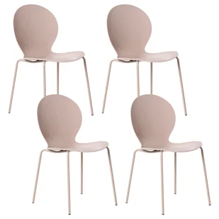 Komplet krzeseł ogrodowych w nowoczesnym stylu. Ten komplet czterech krzeseł sprawdzi się zarówno w ogrodzie, jak i w jadalni. Krzesła są lekkie, wykonane z materiału odpornego na warunki atmosferyczne, z metalowymi nogami zapewniającymi stabilność, a wykończenie e-coating chroni je przed korozją, zarysowaniami i blaknięciem, gwarantując długotrwałą trwałość. Są także praktyczne dzięki możliwości sztaplowania, a ich nowoczesny, minimalistyczny design sprawia, że doskonale pasują do każdego wystroju. Szczegóły: Typ produktu: