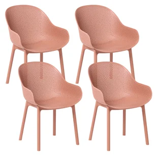 Komplet 4 krzeseł do ogrodu i jadalni. Ten zestaw krzeseł łączy styl i funkcjonalność. Wykonany z wytrzymałego, lekkiego materiału syntetycznego, odpornego na warunki atmosferyczne, doskonale sprawdzi się zarówno w ogrodzie, jak i w jadalni. Krzesła są łatwe w pielęgnacji, a ich prosty design z perforowanym siedziskiem i piękny kolor idealnie wpasują się w każdą przestrzeń i styl. Szczegóły: Typ produktu: