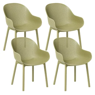 Komplet 4 krzeseł do ogrodu i jadalni. Ten zestaw krzeseł łączy styl i funkcjonalność. Wykonany z wytrzymałego, lekkiego materiału syntetycznego, odpornego na warunki atmosferyczne, doskonale sprawdzi się zarówno w ogrodzie, jak i w jadalni. Krzesła są łatwe w pielęgnacji, a ich prosty design z perforowanym siedziskiem i piękny kolor idealnie wpasują się w każdą przestrzeń i styl. Szczegóły: Typ produktu: