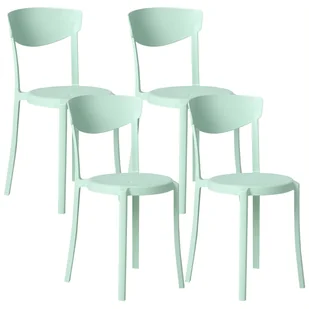 4 plastikowe krzesła do użytku wewnątrz i na zewnątrz. Te minimalistyczne krzesła mogą zostać nieodłącznym elementem twojego tarasu lub jadalni. Charakteryzuje je lekka konstrukcja o matowym wykończeniu oraz nowoczesny kształt. Krzesła można nałożyć jedno na drugie dla wygodnego przechowywania. Komplet nadaje się również dla dzieci, ponieważ powierzchnię mebli łatwo jest przetrzeć do czysta.