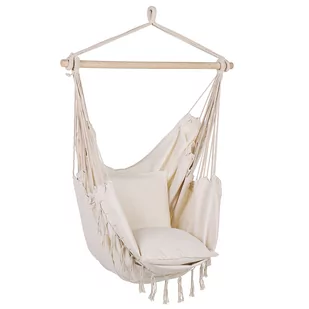 Hamak jest spakowany w torbę, całkowicie złożony i gotowy do montażu. Szczegóły: Typ produktu: Fotel wiszący. Styl: Boho. Kolor główny: Beżowy. Rodzaj materiału: