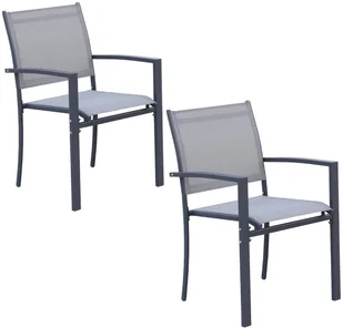 - trwały materiał Textilene – odporny na wilgoć, promienie UV i łatwy w czyszczeniukomfortowe podłokietniki – zapewniają wygodę podczas wypoczynkusolidna konstrukcja – stabilna i wytrzymała, idealna do użytku zewnętrznegokomplet 2 sztuk – idealny zestaw na taras, balkon lub do ogrodunowoczesny i estetyczny design – pasuje do każdej przestrzeniobciążenie do 120 kg – bezpieczne i trwałe użytkowanie