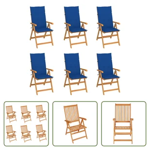 The Living Store krzesła ogrodowe 6 szt. z niebieskimi poduszkami z litego drewna tekowego