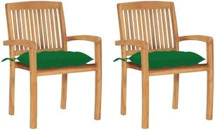 Zestaw krzeseł ogrodowych posiada oparcia z listew i lekko zakrzywione podłokietniki, zapewniające dodatkowy komfort siedzenia. Krzesła można również układać w stosy, aby zaoszczędzić miejsce, gdy nie są używane. Dołączone poduszki są praktyczne i pełnią funkcję dekoracyjną.