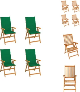 vidaXL Krzesła ogrodowe 4 szt. z zielonymi poduszkami z litego drewna tekowego - Krzesła ogrodowe