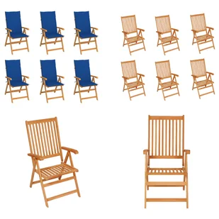 vidaXL Krzesła ogrodowe, 8 szt., niebieskie poduszki, drewno tekowe! 3073062