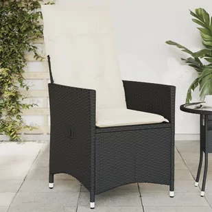 vidaXL Rozkładany fotel ogrodowy z poduszkami, czarny polirattan