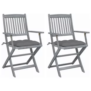 Krzesła stołowe wykonano z litego drewna akacjowego - tropikalnego, twardego drewna - dzięki czemu są odporne na warunki atmosferyczne i trwałe na lata użytkowania. Lite drewno akacjowe jest wytrzymałe na obciążenia oraz upływ czasu. Wykończoną w szarym kolorze powierzchnię można łatwo wyczyścić przy pomocy wilgotnej ściereczki. Krzesła można złożyć, aby zaoszczędzić miejsce, gdy nie są używane. Co więcej dołączone poduszki oferują większy komfort podczas wypoczynku lub posiłku. Każda poduszka zawiera dwa zestawy sznurków, które służą do przymocowania jej do krzesła.