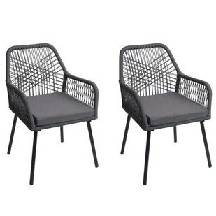 Zestaw 2 krzeseł ogrodowych HWC-O12, poduszka na siedzisko z aluminium o splocie linowym Rope ~ antracyt, pokrowiec ciemnoszary