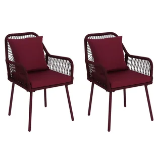 Zestaw 2 krzeseł ogrodowych HWC-O12, poduszki siedziska/oparcia Outdoor, plecionka aluminiowa Rope ~ bordowa, pokrowiec bordowy