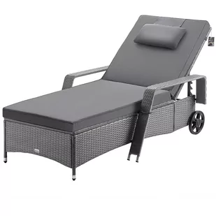 W ten sposób leżak elastycznie porusza się wraz ze słońcem. Zagłówek jest regulowany w 5 kierunkach, dzięki czemu można łatwo dostosować oparcie do idealnej pozycji leżącej lub siedzącej podczas czytania. Poduszka pod głowę zapewnia wygodną postawę dla szyi. Ręcznie tkany polirattan i mocna, malowana proszkowo stalowa rama leżaka zostały zaprojektowane z myślą o bezpieczeństwie, a jednocześnie dodają stylowego akcentu do Twojego ogrodu. Zalety produktu: