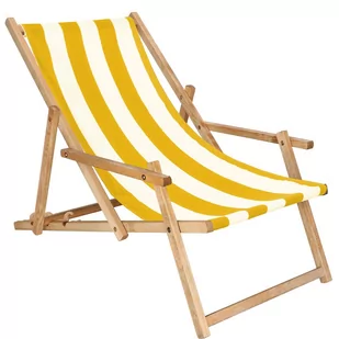 WYKONANIE NA NAJWYŻSZYM POZIOMIE Leżak drewniany od firmy Springos to produkt, dzięki któremu poczujesz wakacyjny klimat nawet w zaciszu swojego domowego ogrodu. Produkt został wyprodukowany w Polsce z dbałością o najdrobniejsze szczegóły. Użycie drewna bukowego sprawia, że leżak charakteryzuje się odpowiednią twardością oraz podatnością nawet na bardzo duże obciążenia do 120kg, dzięki czemu nie wypaczy się oraz nie zniekształci. Siedzisko leżaka w żółto-białym kolorze, zostało wyprodukowane z wytrzymałego, nieprzemakalnego oraz odpornego na działanie promieni UV materiału. Leżak posiada podłokietniki.