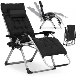 Leżak ogrodowy plażowy regulowane oparcie fotel z poduszką + zagłówek czarny MultiGarden