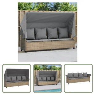 Leżak z baldachimem i poduszkami Beżowy polirattanZrelaksuj się i ciesz się przestrzenią na zewnątrz na tym wygodnym leżaku! Wytrzymały materiał: rattan PE, znany również jako polirattan, to wytrzymały, łatwy w pielęgnacji materiał syntetyczny o wyglądzie naturalnego rattanu. Charakteryzuje się niską wagą i jest łatwy w czyszczeniu. Ze względu na swoją trwałość i odporność na warunki atmosferyczne jest często wykorzystywany do produkcji mebli ogrodowych. Regulowane oparcie i podnóżek:
