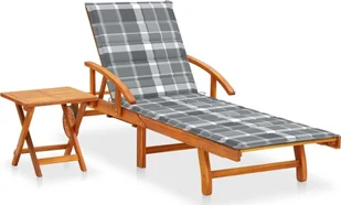 Ten leżak ogrodowy ze stolikiem wykonano z litego drewna akacjowego, dzięki czemu jest solidny i stabilny. Można go łatwo przestawiać za pomocą 2 kółek. Oparcie i podnóżek są regulowane, co pozwala ustawić leżak w pożądanej pozycji. Wysuwany stolik i składany stolik boczny umożliwiają odłożenie telefonu, okularów przeciwsłonecznych, napojów i innych drobiazgów. Poduszka zapewnia większy komfort leżenia. Zawiera ona sześć sznurków do solidnego przymocowania jej do leżaka.