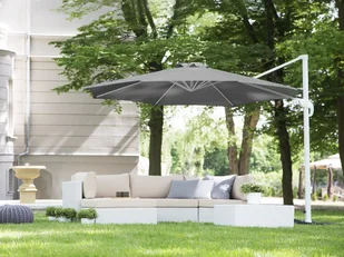 Podwieszany parasol na wysięgniku Składany parasol na wysięgniku jest niezbędnym elementem do ogrodu i na taras, zapewniającym doskonałe źródło cienia w gorące dni. Wykonany z wysokiej jakości, wytrzymałych materiałów będzie służył przez wiele lat. Parasol ogrodowy wyposażony jest w mechanizm korbowy, który pozwala na jego wygodne otwieranie i zamykanie. Szczegóły: Kolor: Szary, Biały. Materiał: Poliester. Dodatkowy materiał: