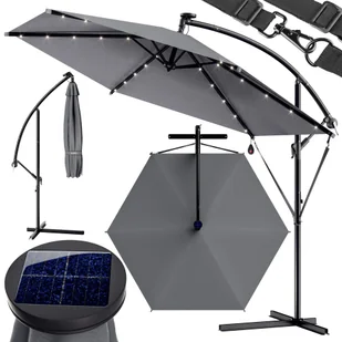 Ochrona przed słońcem w ciągu dnia i światło wieczorem! Ten elegancki parasol wspornikowy z ochroną UV 80+ wykonany z malowanego proszkowo aluminium ma ponad 300 cm wysokości, jest solidny i łatwy w obsłudze dzięki płynnie działającej korbie. Stoi stabilnie na podstawie i można go ustawić w dowolnym miejscu, aby zaoszczędzić miejsce. Płynnie działający mechanizm korbowy sprawia, że otwieranie i regulacja parasola nie wymaga wysiłku. Parasol wspornikowy można również przechylać lub przechylać indywidualnie. Wytrzymały maszt można praktycznie zdemontować w celu zaoszczędzenia miejsca podczas transportu.