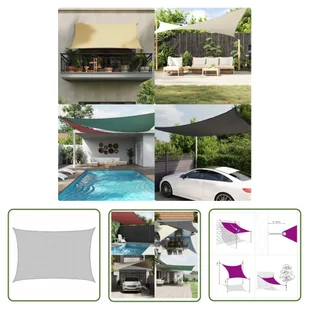 Relaxdays Żagiel przeciwsłoneczny, prostokątny, 3 x 4 m, tkanina HDPE, stabilizowana UV, wklęsła, płótno żaglowe z linami napinającymi, jasnoszary