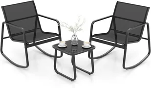 【Solidna metalowa konstrukcja】Stolik kawowy i fotele bujane mają solidną metalową ramę, która zapewnia stabilne podparcie i jest odporna na rdzę. Ponadto blat stolika kawowego z hartowanego szkła jest elegancki i łatwy w utrzymaniu.