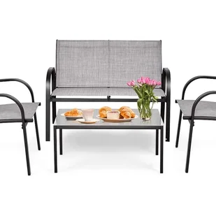 【Zestaw mebli ogrodowych】: Składający się z ławki, 2 krzeseł i stolika, zestaw ten idealnie nadaje się do użytku na zewnątrz, na balkonie, tarasie lub w ogrodzie.