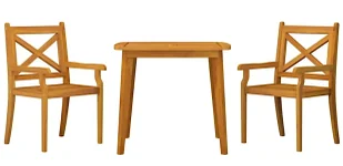 Komfortowy odpoczynek: Meble wykonane z bardzo wytrzymałego drewna akacjowego. Dwa krzesła z oparciami i podłokietnikami. Odporność na warunki atmosferyczne. Łatwa konserwacja.