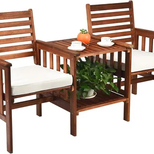 [Stolik z otworem na parasol] Wyposażony w dwupoziomowy stolik między dwoma siedziskami, zestaw idealnie nadaje się do ustawienia napojów, roślin i książek. W odróżnieniu od innych zestawów, nasz stolik ma otwór na parasol o średnicy 5 cm, co sprawia, że jest bardziej praktyczny podczas spędzania czasu na świeżym powietrzu.