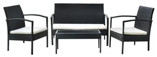 Konstrukcja osadzona jest na metalowych stelażach. Dzięki zastosowaniu rattanu PE, meble są lekkie, trwałe, a zarazem komfortowe. Fotele i sofa mają wygodne poduszki, które możesz przełożyć na oparcia w razie potrzeby. Stół wyposażony jest w blat z ciemnego szkła o grubości 5 mm. Meble ogrodowe są łatwe w czyszczeniu - wystarczy przemyć je mokrą szmatką z odrobiną delikatnego środka czyszczącego.