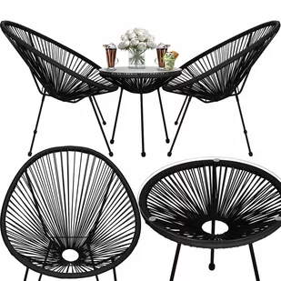 Meble ogrodowe rattanowe dla 2 osób stół ze szkłem hartowanym 2 fotele ażurowe czarne