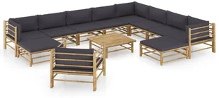 Ogrodowy zestaw wypoczynkowy wykonano z bambusa, dzięki czemu jest mocny i łatwy do czyszczenia. Grubo wyściełane poduszki zapewniają większy komfort w czasie odpoczynku. Zamki błyskawiczne umożliwiają zdjęcie ich poszewek i wypranie. Ten komplet wypoczynkowy do ogrodu ma lekką konstrukcję, co pozwala na jego swobodne przestawianie. Dzięki modułowej formie możesz ustawić go w dowolnej aranżacji, zgodnie z własnymi preferencjami.