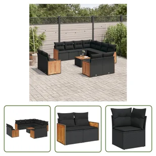 12-częściowy zestaw sof ogrodowych z poduszkami z czarnego polirattanuTen zestaw sof ogrodowych jest idealnym dodatkiem do ogrodu, patio lub dziedzińca. Zapewnia wygodne i zachęcające miejsce do rozmów z rodziną i przyjaciółmi lub po prostu relaksu i cieszenia się życiem na świeżym powietrzu. Wytrzymały materiał: rattan PE, znany również jako polirattan, to wytrzymały, łatwy w pielęgnacji materiał syntetyczny o wyglądzie naturalnego rattanu. Charakteryzuje się niską wagą i jest łatwy w czyszczeniu.