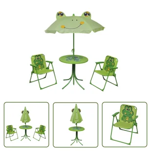 Ten zestaw mebli ogrodowych ze stołem, dwoma krzesłami i parasolem został specjalnie zaprojektowany dla dzieci. Sprawia, że czas spędzony na świeżym powietrzu jest jeszcze przyjemniejszy! Dzięki solidnej stalowej ramie ten zestaw mebli dla dzieci jest wytrzymały i trwały - i oferuje dzieciom osłonięte miejsce do odpoczynku i relaksu. Dołączony do zestawu parasol chroni maluchy przed słońcem. Krzesła można złożyć, aby zaoszczędzić miejsce do przechowywania, gdy nie są używane. Zawiera 1 stół, 1 parasol i 2 krzesła.