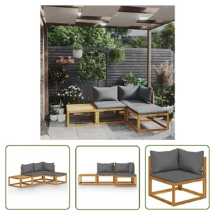 Dzięki modułowej konstrukcji wszystkie elementy można dowolnie ustawiać i dostosowywać do własnych potrzeb. Ten zestaw wypoczynkowy z pewnością stanie się centralnym punktem ogrodu lub patio. ZaletyTen kompaktowy i bardzo wygodny drewniany zestaw wypoczynkowy bez wątpienia stanie się centralnym punktem ogrodu lub patio. Pozostałe specyfikacjeKolor poduszek: ciemnoszaryMateriał: