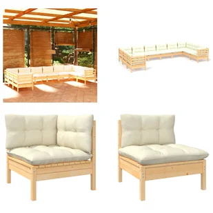 10-częściowy zestaw wypoczynkowy do ogrodu z kremowymi sosnowymi poduszkamiTen drewniany zestaw ogrodowy jest doskonałym wyborem do relaksu i cieszenia się pogodą, drzemki lub rozmowy z rodziną lub przyjaciółmi. Zestaw wypoczynkowy na patio został wykonany z litego drewna sosnowego, dzięki czemu jest solidny i stabilny. Poduszki zapewniają dodatkowy komfort. Możesz połączyć go z innymi modułowymi segmentami, aby stworzyć swój własny, spersonalizowany zestaw wypoczynkowy do ogrodu!Uwaga: Abyprzedłużyć żywotność mebli ogrodowych, zalecamy ich regularne czyszczenie i przykrywanie, gdy nie są używane na zewnątrz.