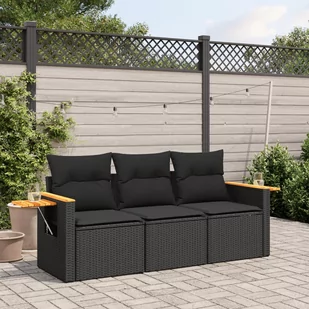 vidaXL 3-cz. zestaw wypoczynkowy do ogrodu, poduszki, czarny rattan PE