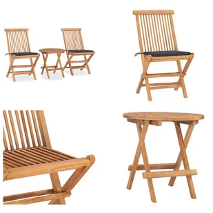 3-częściowy ogrodowy zestaw jadalniany z poduszkami Składane meble z litego drewna tekowegoTen drewniany zestaw ogrodowy będzie centralnym elementem ogrodu, tarasu lub patio. Drewno tekowe użyte do produkcji tego mebla zostało wysuszone w piecu, a następnie dokładnie wyszlifowane, aby nadać mu bardzo gładką teksturę. Drewno tekowe jest cenione za wyjątkową wytrzymałość i odporność na warunki atmosferyczne, dzięki czemu jest bardziej odpowiednie do mebli ogrodowych niż jakikolwiek inny rodzaj drewna. Lite drewno tekowe to idealny wybór, jeśli chcesz mieć trwałe meble ogrodowe. Gdy nie są używane, stół i krzesła można złożyć, aby zaoszczędzić miejsce.