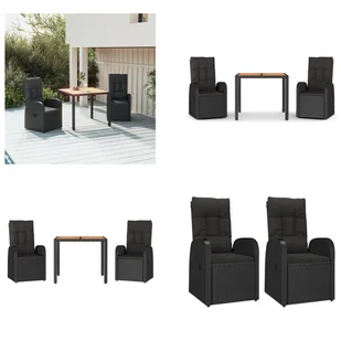 3-częściowy ogrodowy zestaw jadalniany z poduszkami z czarnego polirattanuDzięki eleganckiemu i nowoczesnemu wzornictwu ten modny zestaw ogrodowy jest doskonałym wyborem do spożywania posiłków lub relaksu w ogrodzie. Materiał odporny na warunki atmosferyczne: rattan PE, znany również jako polirattan, jest odporny na warunki atmosferyczne i łatwy w pielęgnacji. Jego powierzchnia zachowuje atrakcyjny wygląd przez długi czas. Oferuje wysoką jakość, komfort i estetyczny wygląd.