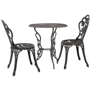 Ten zestaw mebli bistro ze stopu aluminium ma elegancką formę i składa się z 1 stołu i 2 krzeseł. Będzie to idealny wybór, jeżeli lubisz jadać posiłki na balkonie lub w ogrodzie. Doskonale sprawdzi się też używany w barach i restauracjach.