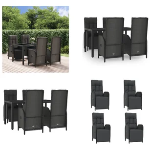 5-częściowy zestaw ogrodowy z poduszkami z czarnego polirattanuDzięki eleganckiemu i nowoczesnemu wzornictwu ten modny zestaw ogrodowy jest doskonałym wyborem do spożywania posiłków lub relaksu w ogrodzie. Materiał odporny na warunki atmosferyczne: rattan PE, znany również jako polirattan, jest odporny na warunki atmosferyczne i łatwy w pielęgnacji. Jego powierzchnia zachowuje atrakcyjny wygląd przez długi czas. Oferuje wysoką jakość, komfort i estetyczny wygląd.