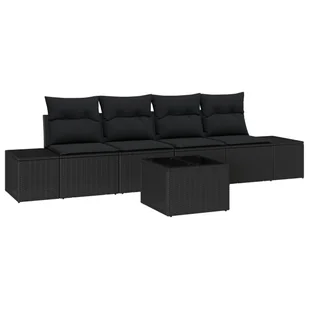 vidaXL 5-częściowy zestaw kanapowy do ogrodu z poduszkami Czarny polirattan