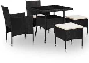 Wykonany z zabezpieczonego przed działaniem promieni UV rattanu PE, z mocną, stalową, malowaną proszkowo ramą, zestaw jadalniany jest odporny na działanie warunków pogodowych i trwały, co zapewnia długi czas użytkowania. Wzmocniony blat z hartowanego szkła tworzy gładką, łatwą do czyszczenia powierzchnię. Komplet mebli pomieści 4 osoby w pełnym komforcie. Każde krzesło ma zdejmowaną, grubo wypełnioną poduszkę, oferującą większą wygodę podczas relaksu. Wszystkie poszewki są zdejmowane dzięki zapięciom na suwak. Co więcej lekka, rattanowa konstrukcja sprawia, że każdy element łatwo przenieść, przestawić i przetransportować. W skład dostawy wchodzi 1 stół, 2 fotele, 2 stołki i 2 poduszki na siedziska.