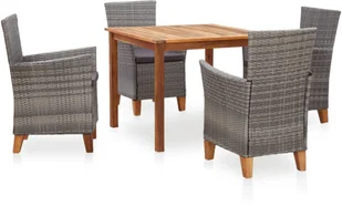 - Materiał: rattan PE (polietylenowy), malowana proszkowo stal, lite drewno akacjowe