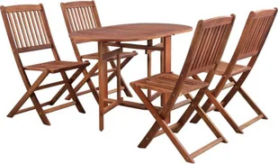 Stół i krzesła zostały wykonane z wysokiej jakości litego drewna akacjowego, tropikalnego, twardego drewna odpornego na niekorzystne warunki pogodowe i bardzo trwałego. Wykończona olejem powierzchnia sprawia, że meble są łatwe w utrzymaniu w czystości, wystarczy wilgotna szmatka. Nieużywane stół i krzesła można złożyć, co znacznie ułatwi ich przechowywanie. Montaż zestawu jest łatwy.