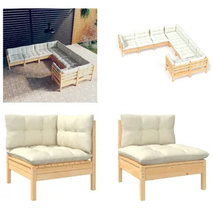 8-częściowy zestaw wypoczynkowy do ogrodu z kremowymi poduszkami z litego drewna sosnowegoTen ogrodowy zestaw wypoczynkowy jest doskonałym wyborem do relaksu i cieszenia się pogodą, drzemki lub rozmowy z rodziną lub przyjaciółmi. Zestaw wypoczynkowy na patio został wykonany z litego drewna sosnowego, dzięki czemu jest solidny i stabilny. Poduszki zapewniają dodatkowy komfort. Możesz połączyć go z innymi modułowymi segmentami, aby stworzyć swój własny, spersonalizowany zestaw wypoczynkowy do ogrodu!Uwaga: Aby przedłużyć żywotność mebli ogrodowych, zalecamy ich regularne czyszczenie i ochronę przed deszczem lub silnym światłem słonecznym, gdy znajdują się na zewnątrz.