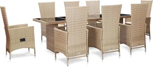 Wykonany z odpornego na warunki atmosferyczne i wodę rattanu PE zestaw jadalniany jest łatwy do czyszczenia, wytrzymały i odpowiedni do codziennego użytkowania. Stalowe ramy malowane proszkowo sprawiają, że stół i krzesła są mocne i trwałe. Blat i podłokietniki wykonano ze szkła, które jest łatwe w czyszczeniu. 8 krzeseł można rozłożyć dzięki regulowanemu oparciu i podnóżkowi. Dotknięcie przycisku z boku spowoduje odchylenie oparcia. Dzięki lekkiej konstrukcji wszystkie meble można łatwo przestawiać.