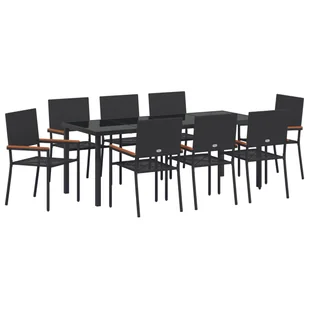 vidaXL 9-elementowy zestaw do jedzenia w ogrodzie Czarny Polirattan