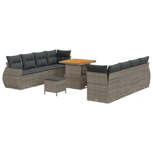 vidaXL Zestaw 11 Elementowy Sofy Ogrodowej z Poduszkami Szary Polirattan Akacja