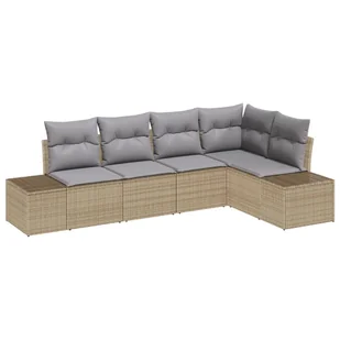 vidaXL Zestaw 5-częściowych sof ogrodowych z poduszkami beżowy polirattan
